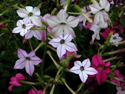 Virágok nicotiana, virágzás dohány (Nicotiana alata), vagy cső alakú, mérsékelten növekszik gyorsan. Túl sok megtermékenyítés amikor a nő a nicotiana vezethet a túlzott növekedés a petite növények okoz nekik, hogy hosszú lábú, illetve abba, virágzás, vagy bukás.